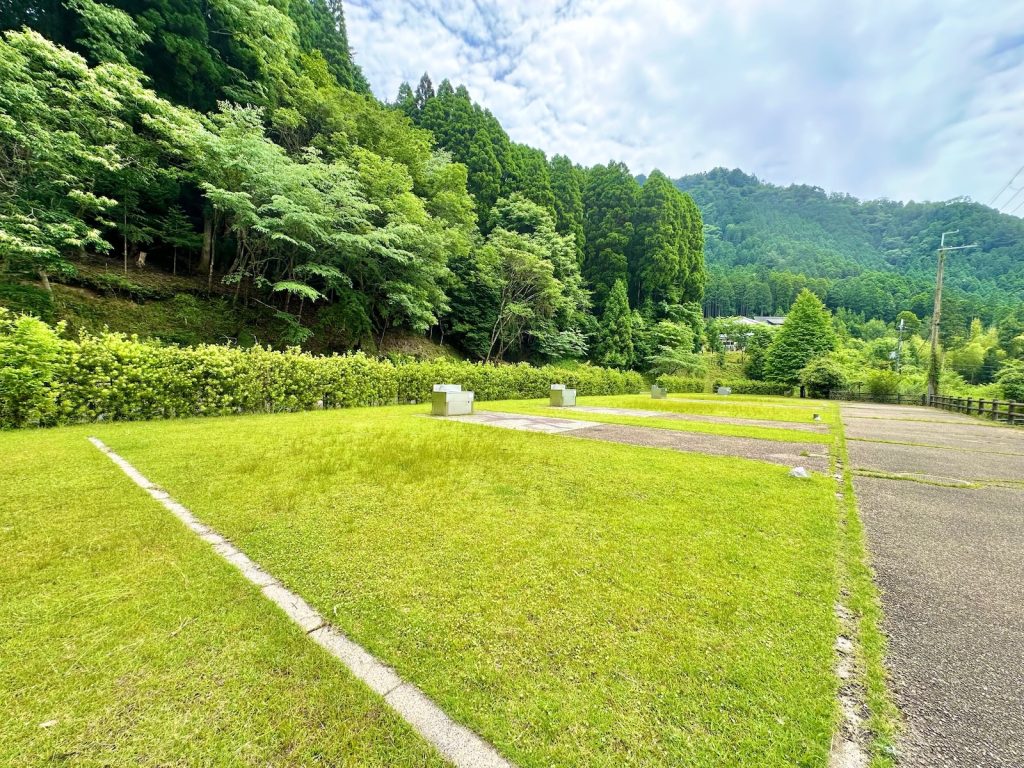 ※サイト内2台駐車は禁止 - 目安として、大サイトは4~5名用のテント・タープ各1張、小サイトはソロ、もしくは2名用のテント・タープを各1張を設営出来る広さです。(テント・タープの上限は設けておりませんが、敷地内設置が条件となります)