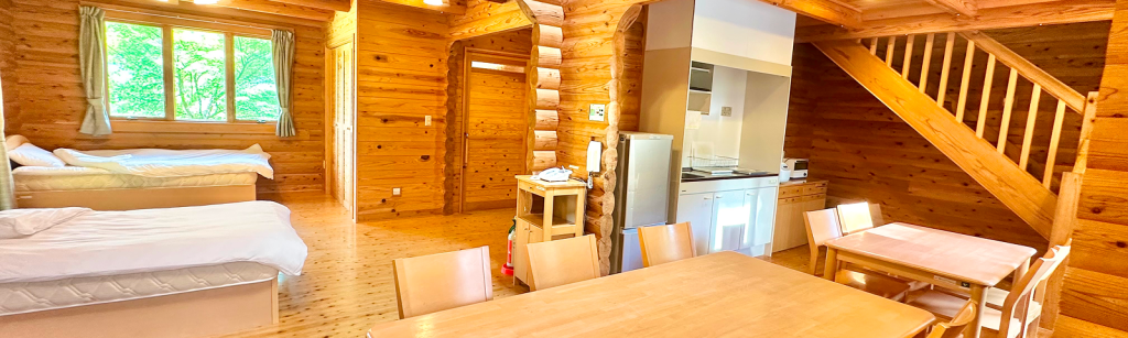 - 3歳以上のお子様より定員にカウントし、2歳以下は定員には数えませんが、2歳以下の幼児はログコテージとコテージで2名までとします。